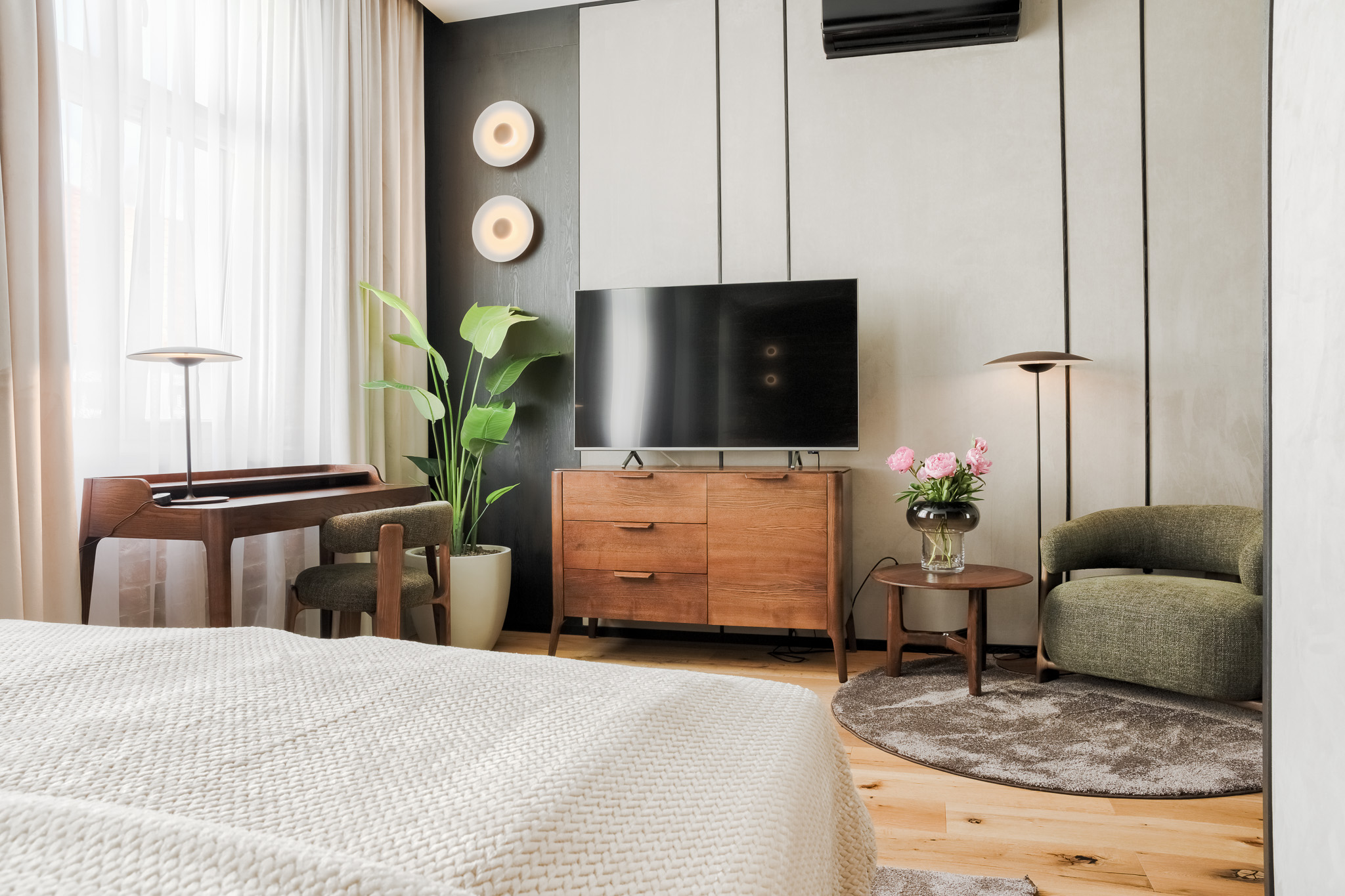 Całość wyposażenia spełnia najwyższe normy hotelowe, łącząc elegancję, funkcjonalność i komfort na najwyższym poziomie.