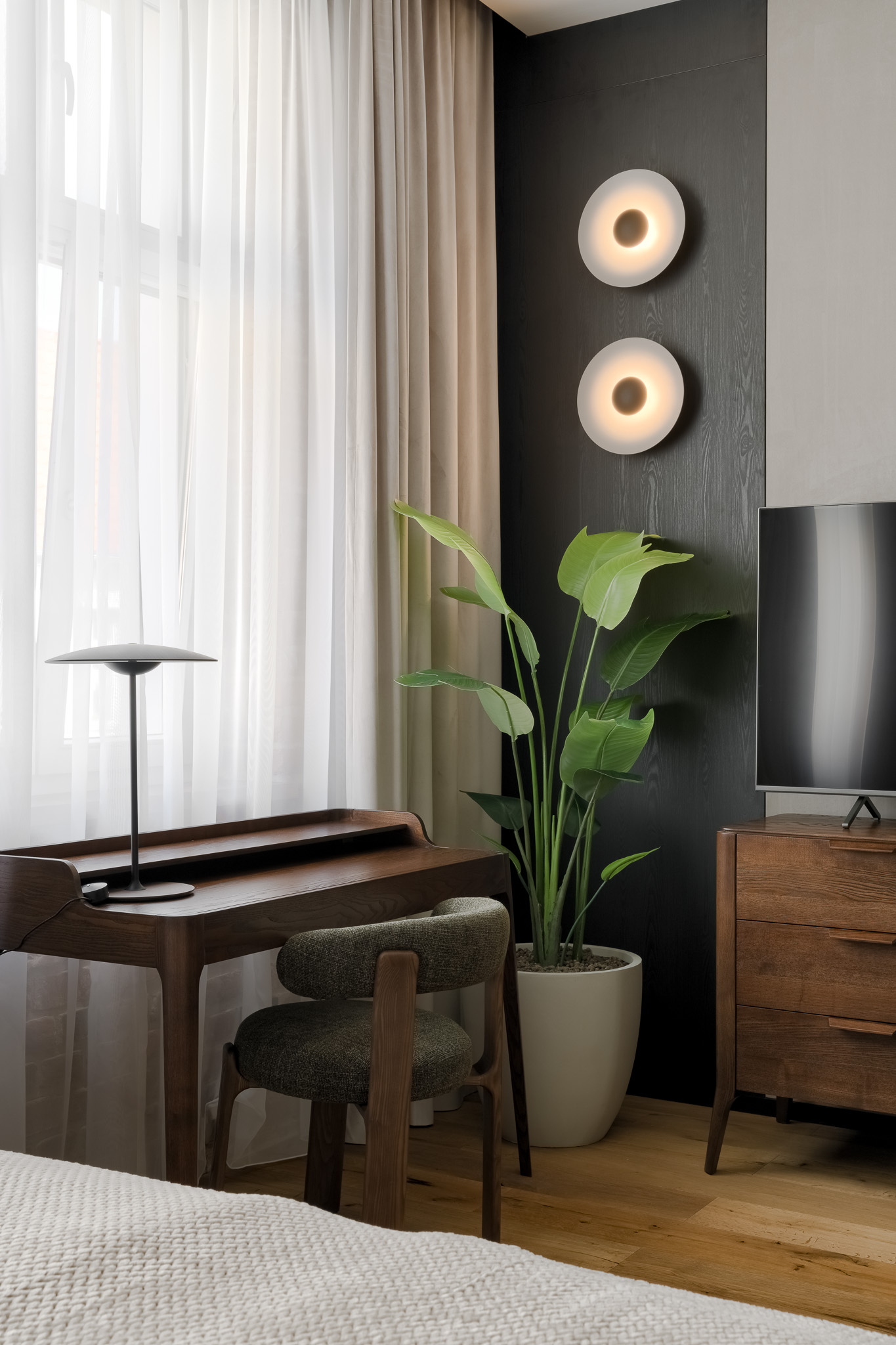 • TV z płaskim ekranem w sypialni